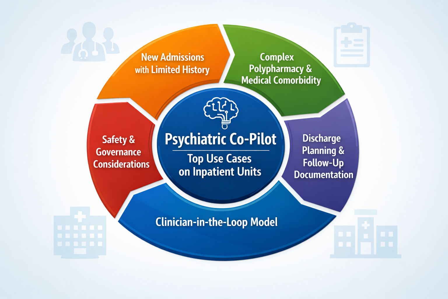 Integrating Co-Pilot psychiatric decision support within an inpatient unit begins with a structured assessment of workflow bottlenecks—such as delays during admissions, documentation burden, medication reconciliation challenges, or discharge inefficiencies. Once key priorities are identified, hospitals can implement Co-Pilot through a phased rollout, allowing clinicians to adopt the tool gradually without disrupting existing clinical operations or care delivery. Targeted training sessions ensure clinicians understand how Co-Pilot functions, how its insights support (rather than replace) clinical reasoning, and how to operate within a clinician-in-the-loop framework that preserves accountability and safety. Early adoption phases typically focus on high-impact use cases, such as progress notes, admission documentation, and medication safety checks, before expanding to broader decision-support capabilities. Within a relatively short adoption period, inpatient units often observe meaningful reductions in administrative workload, improved diagnostic clarity, more efficient medication management, and greater consistency in clinical documentation across providers. As inpatient psychiatry continues to face rising patient acuity and workforce strain, integrating Co-Pilot decision-support tools is increasingly becoming essential for sustaining high-quality, safe, and scalable psychiatric care.